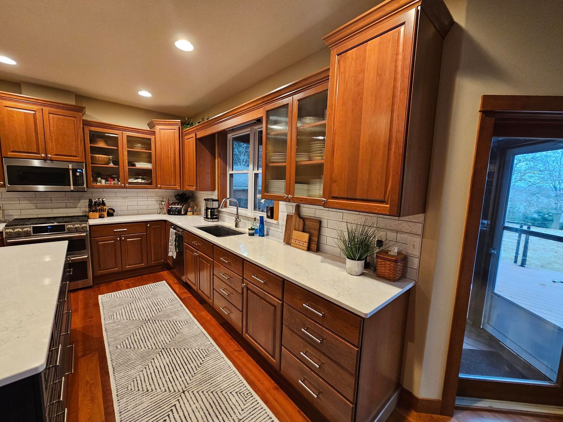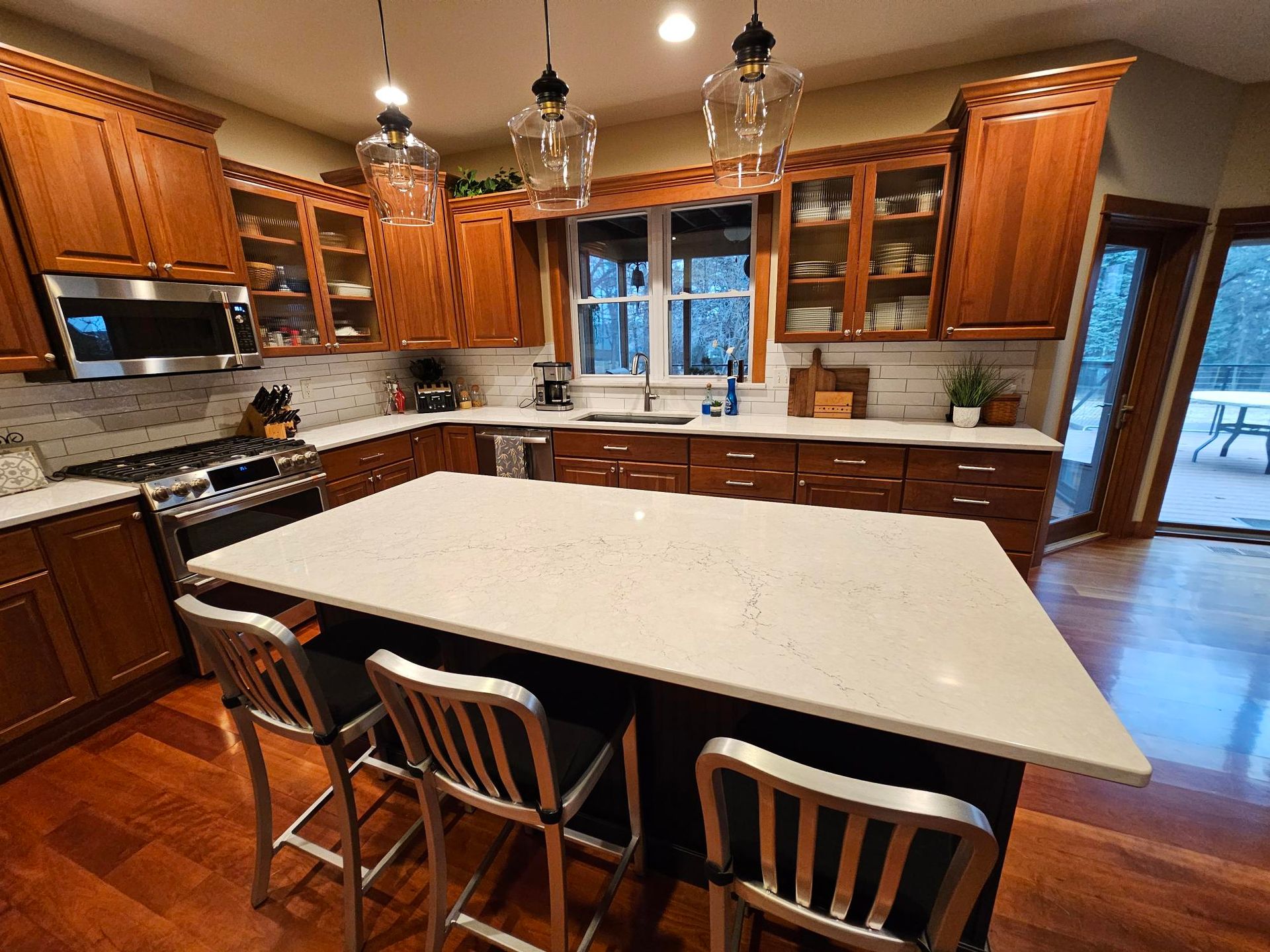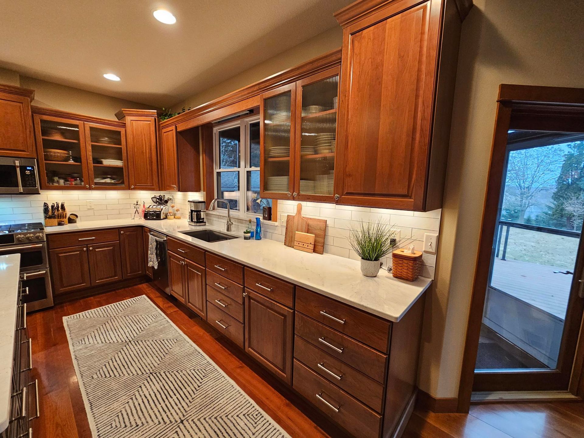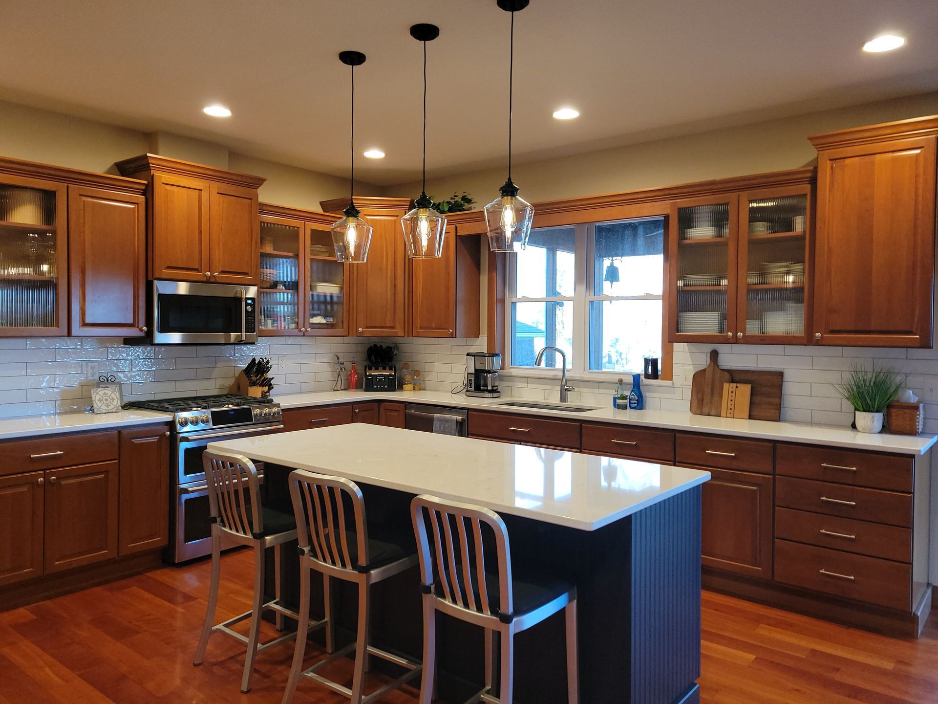 This project is a former customer who put in a gorgeous timeless Cherry kitchen, 17 years ago. But they updated it to make it lighter and brighter without taking away from the gorgeous cherry.