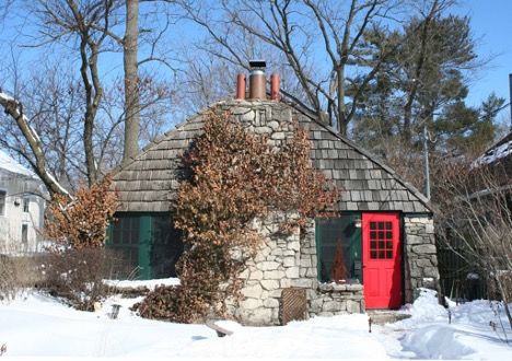 The houses have an eccentric, whimsical design that blends various architectural styles: